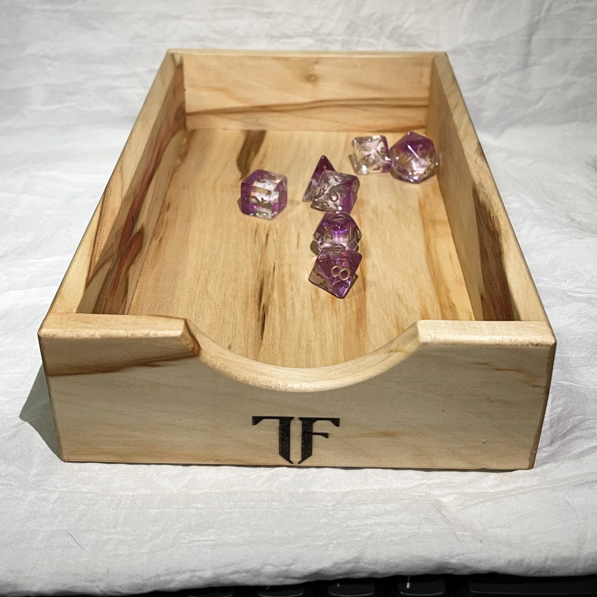What has a light side and a dark side and binds the universe together? Duct Tape! That's what you were thinking, right? Speaking of holding the universe, this tray is ideal for containing your dice as you roll them. The finishing touch is two coats of hand-applied oil and wax buffed to a silky satin sheen.
